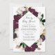 Invitation Plum foncé et Flore de printemps blanc par douche