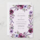 This design features a lush arrangement of watercolor florals in varying shades of purple and mauve. Deep plum anemones with dark centers anchor the visual interest, accented by slender lavender sprigs and dainty lilac blossoms. The soft, airy composition creates a romantic and sophisticated mood for a seasonal gathering.