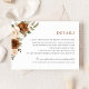 Floral Rust Peach Greenery Détails du Mariage Insérer une carte. Carte de détails floraux blancs. Ensemble d'invitation Mariage de automne romantique