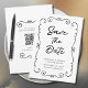 Main Drawn Doodle Bordure Noir et Blanc Mariage Enregistrer la date Invitation... Un design élégant dessiné à la main borde votre texte d'invitation en écriture manuscrite et typographie serif traditionnelle, donnant à l'invitation un look unique pour un mariage unique Enregistrer la carte Date. Au verso de la carte se trouve votre code QR du site mariage où les clients peuvent suivre votre voyage mariage et rester à jour sur les détails. Tout le texte, mis à part le script manuscrit peut être facilement révisé avec vos propres détails sur le modèle de personnalisation.