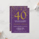 Célébrez votre fête d'anniversaire avec ce Glam élégant 40e anniversaire Purple Gold Confetti Dots Invitation