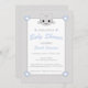 Cute invitation baby shower en gris pastel et bleu bébé. Il présente un dessin animé souriant kawaii tabby cat / kitten en gris, et un motif arrière - plan gris et blanc polka dot spotty. Il est entièrement personnalisable.