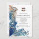 Une belle illustration d'aquarelle représentant des vagues océaniques bleu marine et orange à travers lesquelles nagent un poisson gelé et une grande pieuvre bleue. Ils sont entourés d'un éclat d'aquarelle bleu et orange de l'océan profond, de bulles blanches en ivoire et de mousse d'or imitation. Elles sont idéales pour la destination côtière ; mariages tropicaux d'île et de plage, baby showers et anniversaires. Personnalisez les modèles pour qu'ils conviennent à votre occasion.