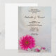 Invités Invitations pour célébrer la mariée et le marié le matin après leur cérémonie de mariage avec la jolie Pink Daisy et Buttons Post Mariage Brunch Invitation. Cet élégant bouton personnalisé sur le thème After Mariage Breakfast or Luncheon Invitation présente une photo florale d'une fleur de marguerite rose gerbrée, voile de mariée blanc, diverses perles vintages et boutons de diamant rose avec un arrière - plan satiné blanc. Disponible sous forme d'invitation imprimée à l'envoi ou en téléchargement numérique pour un partage numériquement en ligne facile.