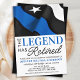 La Légende A Pris Sa Retraite ! Légère Ligne Bleue Invitations de retraite de la police. Célébrez des années de service dévoué, votre retraite d'officier de police et amis et famille invitations à votre parti d'application de la loi avec cette Invitation à la retraite policière de la ligne Bleue mince moderne. Etats-Unis Drapeau américain en couleurs Police Drapeau, moderne noir bleu blanc design. Consultez notre collection pour les cadeaux de retraite de la police, les faveurs de la retraite de la police, et les fournitures. DROIT D'AUTEUR © 2021 Judy Burrows, Black Dog Art - Tous droits réservés. Légende de la police retraitée mince ligne bleue Invitation à la retraite