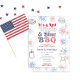 Une invitation BBQ Rouge Blanc et Bleu avec typographie d'inspiration rétro et graphismes pyrotechniques ! Un design amusant pour un jardin-cuisine décontracté Couples Douche, fiançailles ou dîners de répétition Conception d'invitation, particulièrement adapté pour un événement autour d'un jour férié national comme le Jour de l'Indépendance.