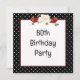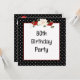 Cadre en pois noir et blanc avec bouquet floral et ruban rouge pour une invitation à la fête du 80e anniversaire. Tout le texte peut être modifié.