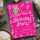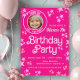 Invitation à la fête d'anniversaire de poupée rose avec arrière - plan rose mignon et étoiles avec tache pour votre photo.. Cette invitation de fête d'anniversaire de poupée rose fonctionne pour n'importe quel âge, il suffit d'ajouter vos détails de l'événement.