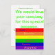 Envoyez ce charmant invitation à des gens que vous aimeriez invitation à votre mariage ou même utiliser comme invitation à la communauté locale pour les invitation à un Gay pride. Le choix d'utilisation pour cette invitation gay polyvalente est vraiment à vous...
