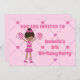 Cette adorable invitation de fête d'anniversaire rose présente une jolie fille afro-américaine en uniforme, portant des poms de pom rose. Personnalisez ce mignon invitation de fête pour enfants avec le nom de votre enfant noir en rose et écrivez vos détails au dos de cette carte.