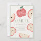 Cette mignonne et moderne "une fête de cueillette de pommes" invitation garçon d'anniversaire comprend des pommes et des tranches de pommes sur un arrière - plan crème encadré par une bordure vert clair. L'envers est doté d'un arrière - plan vert clair avec des motifs de pomme. Personnalisez-le selon vos besoins. Vous pouvez trouver des produits correspondants dans mon magasin.