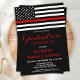 Invitation Pompier Diplômé Mince Pompier Ligne Rouge
