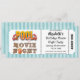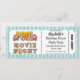 This blue striped ticket-style invitation is perfect for a fun-filled birthday party featuring both a pool party and movie night! With retro marquee lettering, popcorn graphics, and lifebuoy details, this design sets the tone for a unique celebration full of swimming and cinema magic. Personalize it with your party details for an unforgettable invite!