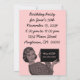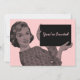 Invitations illustrant une illustration vintage d'une femme des années 1950 tenant un porte - bloc. Customisez-les avec votre propre texte et couleur arrière - plan. Cool rétro !