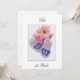 Invitation personnalisée pour le baby shower en portugais. L'intérieur contient les détails de la fête en anglais et en portugais. Petite fille, bottes de lavande avec papillons bleus et marguerites roses claires dans le arrière - plan. Bétons correspondants disponibles Convite personalizado para Chá de Bebé, com foto de botinhas de cor lavanda e borboletas azuis de crochet, e flores malmequeres cor de rosa no fundo. Detalhes sobre a festa dentro do cartão em Português e Inglês. Tambem há vend un condiment.