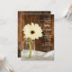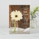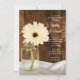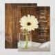 Invitez vos invités à poursuivre la fête le matin après la cérémonie de mariage avec la charmante invitation de brunch de mariage champêtre Mason Jar et White Daisy Country. Cette invitation de style ranch rustique personnalisable élégante et décontractée pour le petit-déjeuner ou le déjeuner après le mariage présente une photographie florale numérique charmante d'un pot de conserve en verre rempli d'une seule fleur de gerbera blanche et un fond en bois de grange brun patiné. Une source d'inspiration parfaite pour votre célébration décontractée de fête de grange.