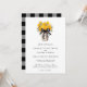 Pot Mason | Floral Country Rustic Faire-part de mariage - Un pot de maçon de campagne est rempli de fleurs jaunes et de verdure et est attaché avec un arc en plis de buffle noir et blanc. L'invitation parfaite à votre mariage rustique chic.