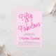 Célébrez un événement marquant avec cette invitation 50 ans et Fabuleuse ! Avec son écriture rose chaud moderne et sa typographie noire chic sur un fond rose, ce design est parfait pour le grand jour de tout quinquagénaire. Ce modèle d'anniversaire cinquantième est entièrement personnalisable pour une élégante fête d'anniversaire. Le verso présente un fond rose assorti, ce qui en fait le choix idéal pour une grandiose célébration d'anniversaire de 50 ans !