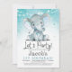 Joli éléphant bleu 1er anniversaire invitation fête. Arrière - plan aquarelle et rayé en arrière.