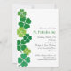 Célébrez la Saint Patrick avec style avec cette invitation qui présente une colonne de trèfle en divers motifs bordant le côté gauche de l'invitation. Le graphique est répété à l'envers. Disponible avec des produits correspondants.