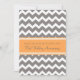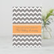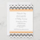 Carton d'invitation pour une fête du premier anniversaire de mariage dans un style amusant et moderne avec un motif rétro en chevrons zigzags orange mandarine, gris et blanc, élégant et contemporain. Personnalisable avec les détails de votre fête.