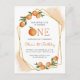 Cette invitation de premier anniversaire sur le thème des agrumes comporte un cadre géométrique doré orné d'oranges à l'aquarelle. Le mot "ONE" apparaît en lettres majuscules orange avec une orange à l'aquarelle à la place du "O". Ajoutez le nom de votre petit bout de chou et sa date d'anniversaire dans une écriture manuscrite orange moderne et les détails de la fête en sans serif noir. Le dos de la carte est d'une teinte orange pastel qui correspond aux reflets de l'aquarelle sur le devant. Un thème idéal neutre pour une fête de premier anniversaire d'été !