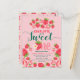 Carte postale d'invitation pour le 1er anniversaire de Sweet One Rose Fraise.