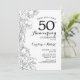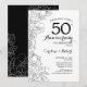 Invitation pour la fête du 50e anniversaire de mariage à fleurs noires et blanches. Design moderne minimaliste avec des dessins de contours botaniques et une typographie en police script. Carte d'invitation élégante parfaite pour une célébration élégante. Peut être personnalisée pour n'importe quelle année de mariage. Cartes d'invitation imprimées sur Zazzle ou modèle numérique téléchargeable instantanément.