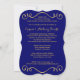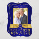 Cette élégante invitation de mariage de 50 ans avec des fleurs de couleur bleu royal et or avec des volutes comporte un ruban or IMPRIMÉ et un médaillon bleu et or avec un aspect de faux-gravure imprimé. Il comporte une zone de modèle pour que vous puissiez télécharger votre propre photo numérique. Vous pouvez supprimer le texte stylisé en cursive "Anniversaire de mariage" ou "50 ans". Tout le texte est personnalisable, ainsi que les choix de papier. ****VEUILLEZ NOTER que si vous passez au papier métallisé or, c'est un or très foncé et cuivré et cela modifiera les couleurs du design (transformera la photo en or, etc.), donc je NE suggère PAS d'utiliser ce papier. Le papier feutre modifiera également légèrement la couleur de votre photo. AUSSI, si vous changez de police ou de taille de police, votre texte peut ne plus convenir correctement. Zazzle ne modifiera rien pour les fautes de frappe, l'alignement ou autre chose, et je ne verrai pas votre invitation. Tout sera imprimé tel qu'il apparaît sur votre moniteur. Si vous avez besoin d'aide pour l'invitation, veuillez me contacter AVANT de la commander. Cette invitation est conçue pour s'adapter à la carte de taille 5x7 de forme incurvée. Si vous changez pour une autre taille/forme, le design ne conviendra plus correctement, donc