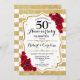 Élégant design rouge blanc or avec faux brillant. Rayures stylées avec des roses rouges.