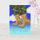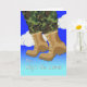 The Sky's the Limit invitation thématique pour un camp d'entraînement envoyer la fête pour un mâle. Une illustration numérique d'une paire de pantalons de camouflage avec des bottes qui montent dans le ciel avec des nuages est sur la couverture de la carte. Customisez l'intérieur de l'invitation comme vous le souhaitez avant d'acheter. Envisagez d'utiliser cette conception pour d'autres occasions, comme le camp d'entraînement de base ou l'obtention d'un diplôme d'entraînement de base si vous le souhaitez. Copyright © Shoaff Ballanger Studios, 2021.