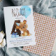 Cet invitation de fête de quatrième anniversaire a un ours en peluche avec un casquette de fête bleu. Le dos de l'invitation a un motif en vichy marron; parfait pour le thème animal de la forêt boisée du garçon 4e anniversaire fête. Personnalisez l'invitation avec vos détails et vous avez les options pour acheter des invitations imprimées ou un téléchargement numérique.