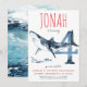 Plongez dans le plaisir en fêtant un quatrième anniversaire ! Notre Invitation à l'anniversaire de Shark Quart présente un requin passionnant dans une scène océanique dynamique, parfait pour une soirée sous-marine. Personnalisez avec vos détails de fête et faites un grand splash avec cette invitation dynamique!