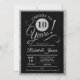 Invitation pour la fête du 10ème anniversaire de mariage en faux strass argent et noir. Carte d'invitation imprimée avec une typographie élégante et des rayures au dos. À la santé de 10 ans ! Peut être personnalisée pour n'importe quelle année d'anniversaire. Parfait pour une célébration élégante du 10ème anniversaire.