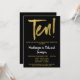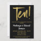 Une invitation élégante, simple mais frappante, noire et dorée pour une fête d'anniversaire de mariage. Texte de script glamour en haut et texte doré en dessous avec le nom en blanc qui ressort