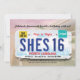 Seize ans et l'obtention du permis de conduire, c'est un événement marquant dans la vie d'une adolescente ! J'ai créé ce design pour mettre en avant la plaque d'immatriculation de l'État et la placer sur un fond doux qui comprend la rue, l'autoroute et le ciel. Ce design résume rapidement votre célébration d'anniversaire. Il est direct mais dans un design amusant qui dit tout. Votre adolescente est sur le point de prendre la route !