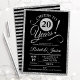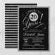 Invitation pour la fête des 20 ans de mariage avec un effet de paillettes argentées et noires. Carte d'invitation imprimée avec une typographie élégante et des rayures au dos. À la santé de 20 ans ! Peut être personnalisée pour n'importe quelle année d'anniversaire. Parfait pour une célébration élégante des 20 ans d'anniversaire de mariage.