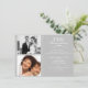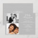Cette invitation pour les 25 ans d'anniversaire de mariage d'argent présente un motif damassé embossé sur une partie du design et dispose d'un espace pour deux photos. Le design comprend également un motif de fioriture blanche au-dessus de la zone de texte. Le verso de l'invitation est principalement constitué du motif damassé et comporte une zone ovale pour le texte. Cette invitation convient pour un 25e anniversaire de mariage d'argent.