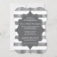 Cette invitation en forme de support rayé blanc et argent pour le 25e anniversaire de mariage comporte une forme de support gris foncé décoratif sur l'avant et l'arrière pour contenir les détails de la fête que vous souhaitez partager avec vos invités. Elle aurait une allure particulièrement élégante sur du papier nacré qui donnerait un effet brillant à l'ensemble. L'invitation est entièrement personnalisable. Si vous avez besoin de produits assortis, veuillez envoyer un courriel à niteowlstudio@gmail.com avec votre demande.