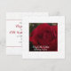 Cette invitation carrée élégante et simple comporte une rose rouge sur le devant et un motif de rose en arrière-plan.