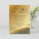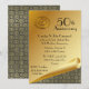 Invitation stylée pour une fête d'anniversaire de mariage de cinquante ans réalisée dans des tons gris tableau noir et or, avec un motif de cercle tourbillonnant moderne et des graphiques à bord roulé, en bas. Le texte en noir est entièrement personnalisable pour répondre aux besoins de votre événement. Une belle invitation que vous serez fier d'envoyer.