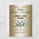 Cette élégante invitation pour un 50e anniversaire de mariage est conçue avec un bouquet de tulipes blanches sur un fond de couleur dorée. Le texte du recto comprend les noms des conjoints, la date de l'événement, l'heure, le lieu et l'adresse. Le texte au verso comprend les détails de la réponse au carton d'invitation sur un fond de couleur dorée, avec un accent de tulipes blanches. Pour personnaliser, il suffit d'insérer vos informations dans notre modèle facile, en remplaçant le texte d'exemple. N'oubliez pas de consulter les pièces supplémentaires qui correspondent à cette collection Golden 50e Anniversaire de Mariage.