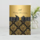Invitation d'anniversaire. Damassé or et noir avec un nœud de bijou. Exclusif Zazzle. Personnalisez avec vos propres détails. NOTEZ TOUTES les images plates ! Elles ne contiennent PAS de diamants ou de bijoux réels !!