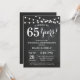 Invitation pour les 65 ans de mariage. Fond de tableau noir. Guirlande lumineuse. Noir et blanc. 1ère, 2e, 3e, 4e, 5e, 10e, 15e, 20e, 25e, 30e, 35e, 40e, 45e, 50e, 55e, 60e, 65e, 70e, 75e, 80e, Toutes années. Anniversaire adulte. Anniversaire homme ou femme. Fête d'anniversaire pour homme. Pour une personnalisation supplémentaire, veuillez cliquer sur le bouton "Personnaliser" et utiliser notre outil de conception pour modifier ce modèle.