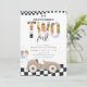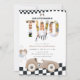 Invitation pour les 2 ans de voiture de course vintage, Invitation de 2e anniversaire de voiture de course beige garçon avec photo "Deux fois vite"