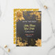 Carte d'invitation SAVE THE DATE pour le mariage de vos rêves. La carte est conçue avec des fleurs dorées et un motif de pétales sur un fond noir dégradé. Vous pouvez également la télécharger instantanément et la partager sur un ziff.