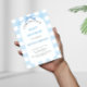 Célébrez l'arrivée prochaine de votre petit paquet de joie avec cette charmante Invitation pour une Baby Shower avec du Gingham Bleu, parfaite pour accueillir un adorable bébé garçon ou une célébration neutre. Cette Invitation rend la planification de votre journée spéciale sans effort et élégante, combinant un motif gingham classique avec un design moderne et épuré qui convient aux thèmes de baby shower estivaux, champêtres ou décontractés.