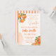 Préparez-vous à quelque chose de doux avec cette invitation de douche de bébé sur le thème orange ! Avec un mélange de polices modernes et classiques entourées de fleurs d'orange sur un fond d'aquarelle orange, cette invitation est parfaite pour une soirée d'été ou une célébration automnale croquante !