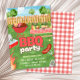 Cette conception aquarelle panoramique présente de la nourriture sur le grill et un ensemble d'éléments essentiels de barbecue sur la table de pique-nique. Que vous organisiez un barbecue estival, que vous lanciez une fête d'anniversaire BBQ ou que vous célébriez une autre occasion, cette invitation est personnalisable pour votre événement. Invitez vos invités à se détendre et à allumer le grill !