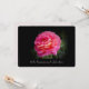 Une seule rose rose sur fond noir décore l'avant de cette élégante invitation recto-verso pour la célébration du 10e anniversaire de mariage. Le verso comporte des lettres noires sur fond rose pâle. Très élégant ! Vous pouvez facilement modifier le texte pour le nom, le titre de l'événement, la date, le lieu, etc. Photographie originale d'Alan Socolik. Tous droits réservés © 2015 Alan & Marcia Socolik.
